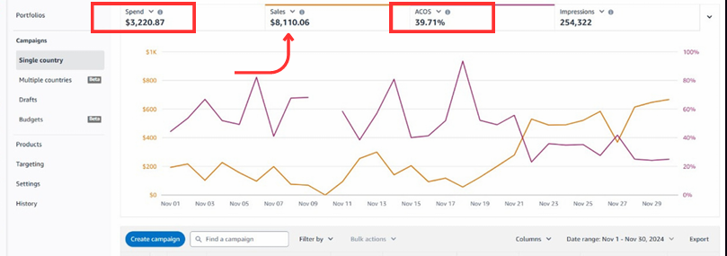 I managed to cut down the spend from $3220 to $2744, Slash ACOS from 39.71% down to 28.44% in just 30 days with an increase in Sales